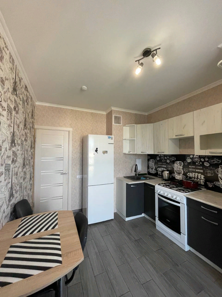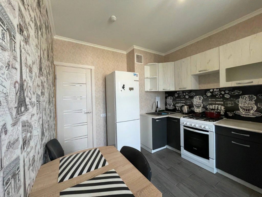 Кухня в квартире полностью оборудована всей необходимой посудой и кухонными принадлежностями. Здесь вы сможете приготовить свои любимые блюда и провести приятные вечера за столом.