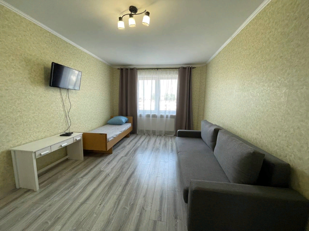 Наша квартира предлагает вам все необходимое для комфортного пребывания. Здесь вы найдете удобную мебель, которая создаст атмосферу уюта и релакса. Гостиная обставлена мягким диваном, где вы можете расслабиться после долгого дня. Спальня оборудована комфортной кроватью и шкафом для удобного хранения вещей.