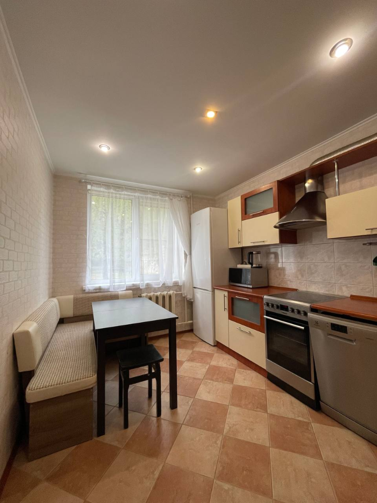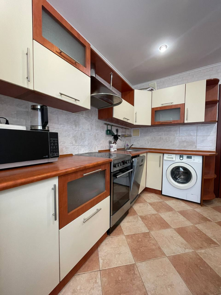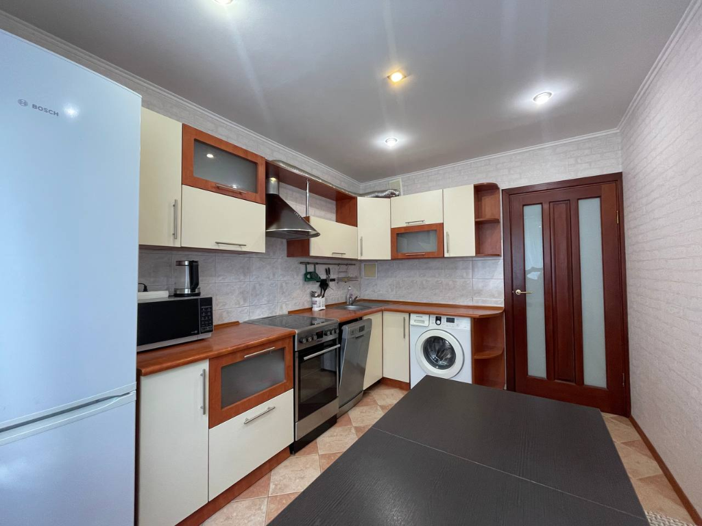 В квартире имеется вся необходимая мебель для отдыха и работы, а также кухонная посуда и бытовая техника, включая стиральную машину и микроволновку. Вы всегда сможете приготовить себе любимое блюдо или просто выпить чашечку кофе в уютной обстановке.