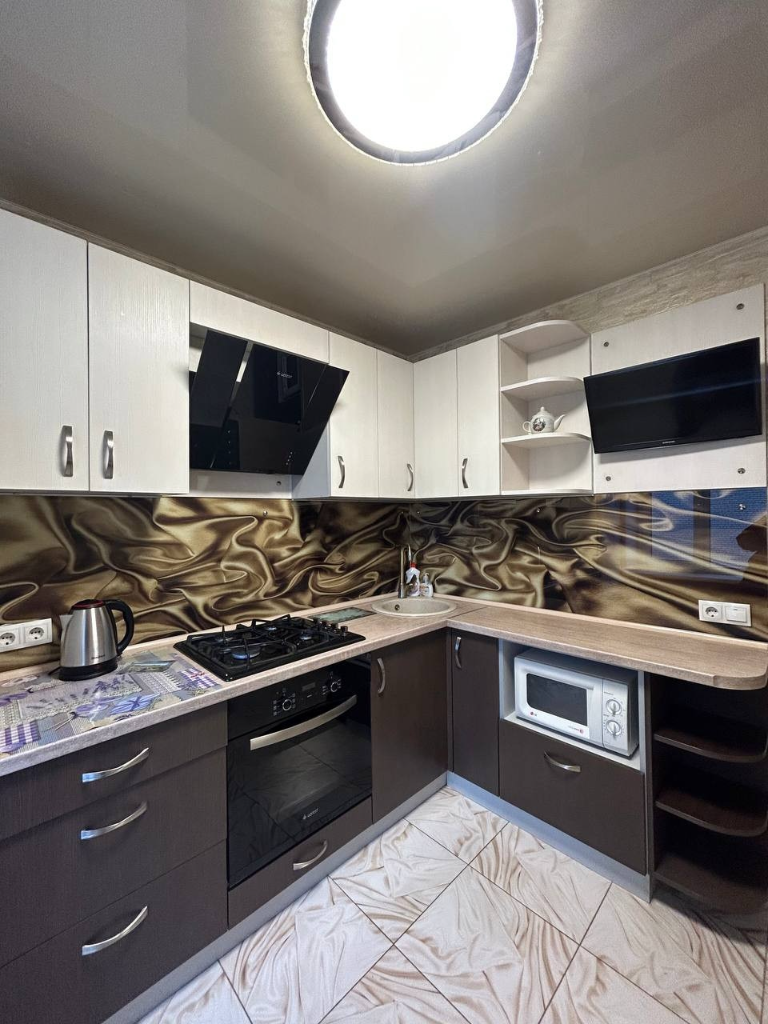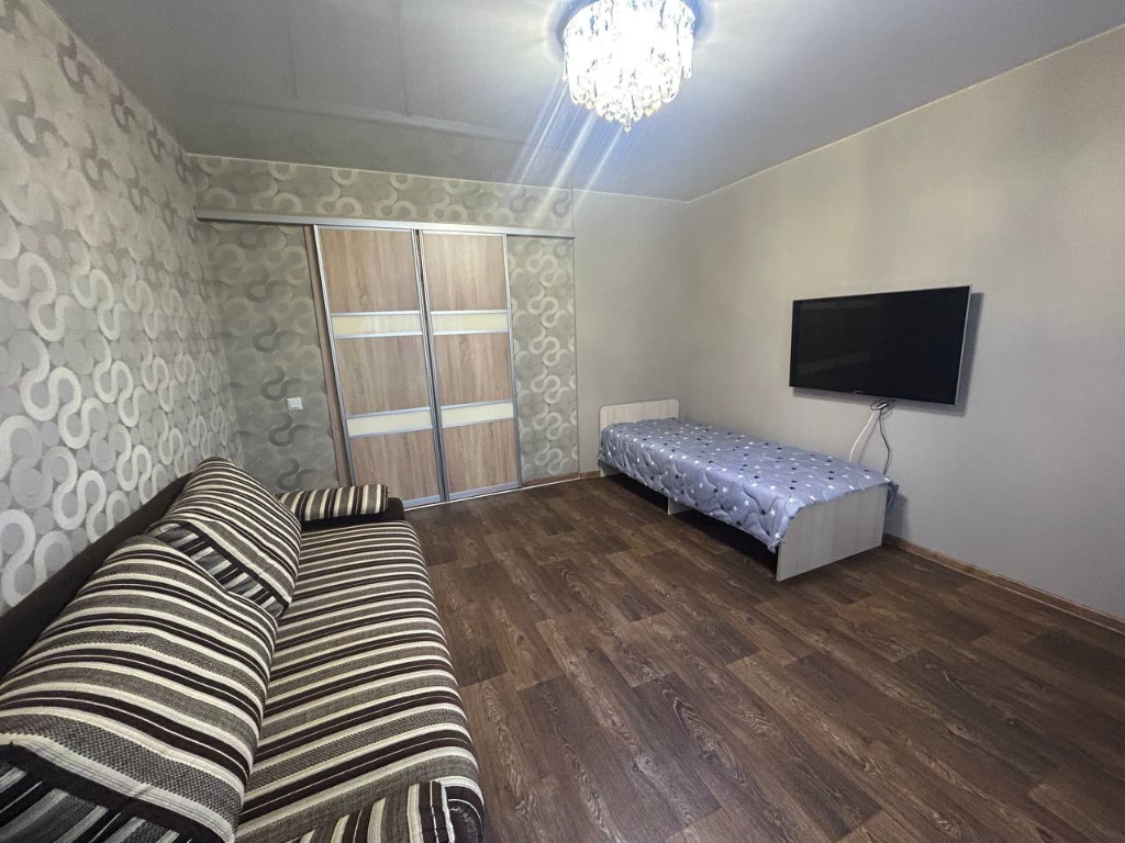 В квартире есть всё необходимое для вашего удобства. Просторная светлая комната с современной мебелью создана для отдыха после насыщенного дня. Кухня полностью оборудована: здесь есть плита, холодильник, микроволновая печь и все принадлежности для приготовления пищи. В уютной спальне вас ждёт комфортная кровать с качественным постельным бельем, что гарантирует спокойный сон. В ванной комнате вы найдете чистые полотенца и гигиенические принадлежности.