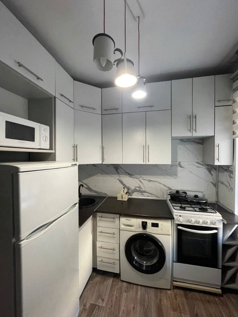 Квартира оборудована всем необходимым для комфортного проживания: мебелью, посудой, бытовой техникой.