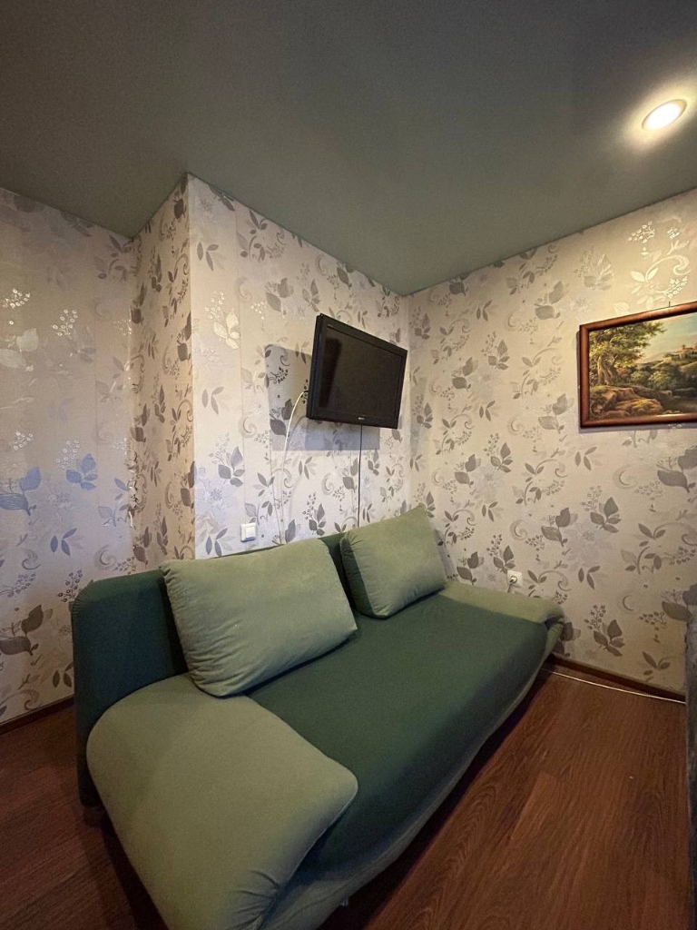 В квартире имеется вся необходимая мебель для комфортного проживания: удобная спальня с большой кроватью, гостиная зона с мягким диваном и ТВ, оборудованная кухня с плитой, холодильником, микроволновкой, кофеваркой и всей необходимой посудой.