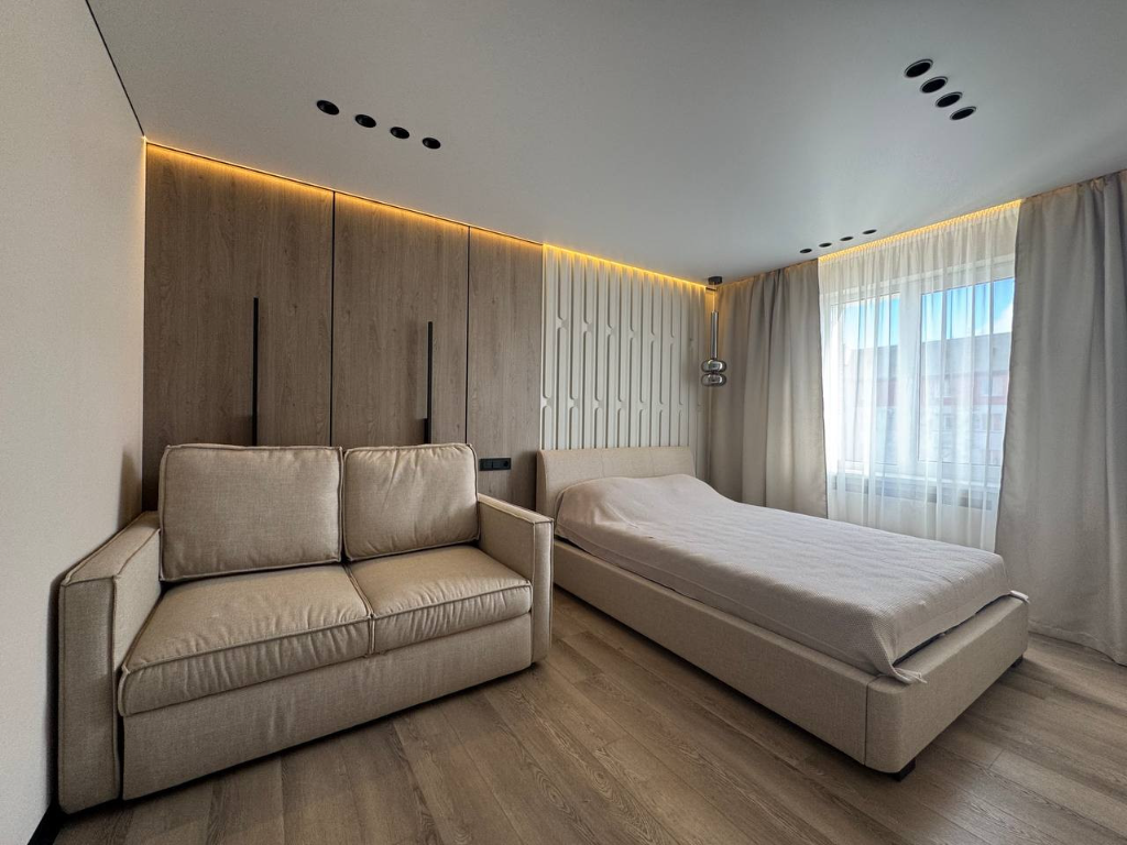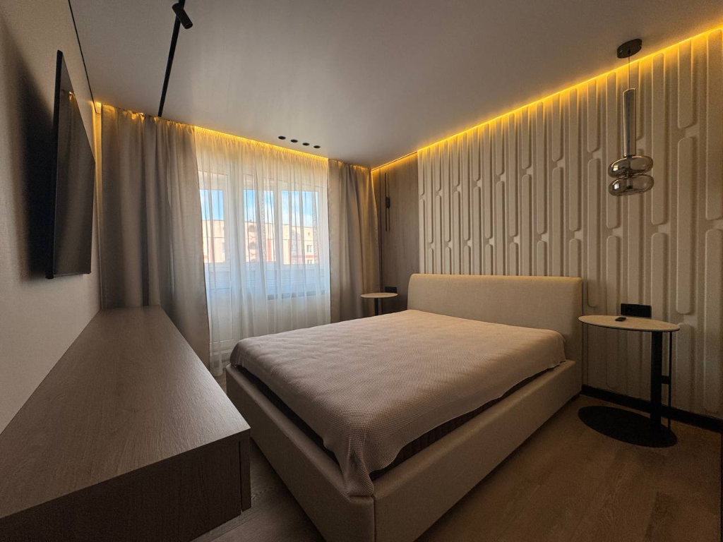 Квартира оснащена всей необходимой мебелью для удобного проживания, включая удобные кровати, шкафы и столы.